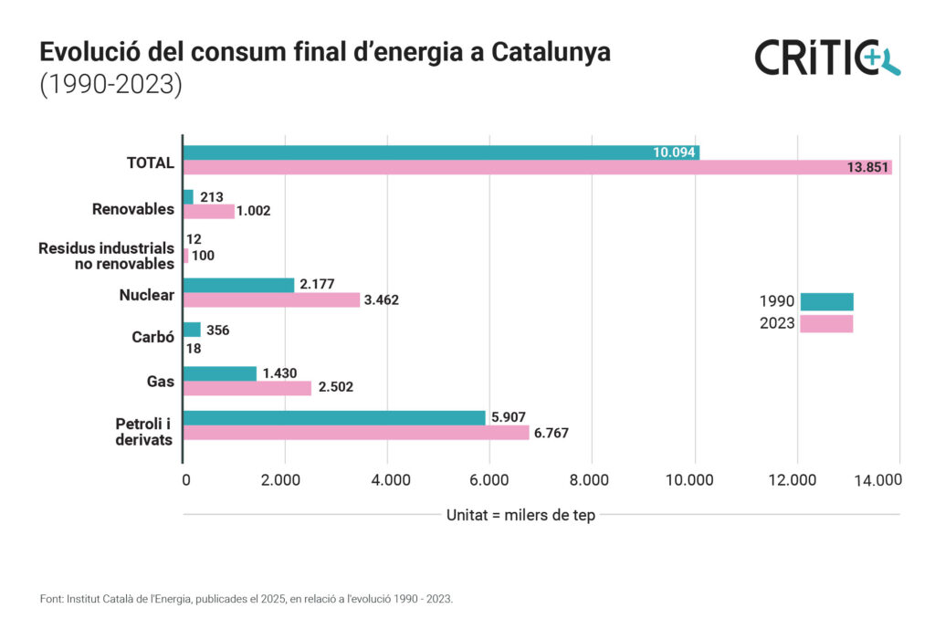 - Cada vegada consumim més energia: un 37% més el 2023 respecte al 1990.